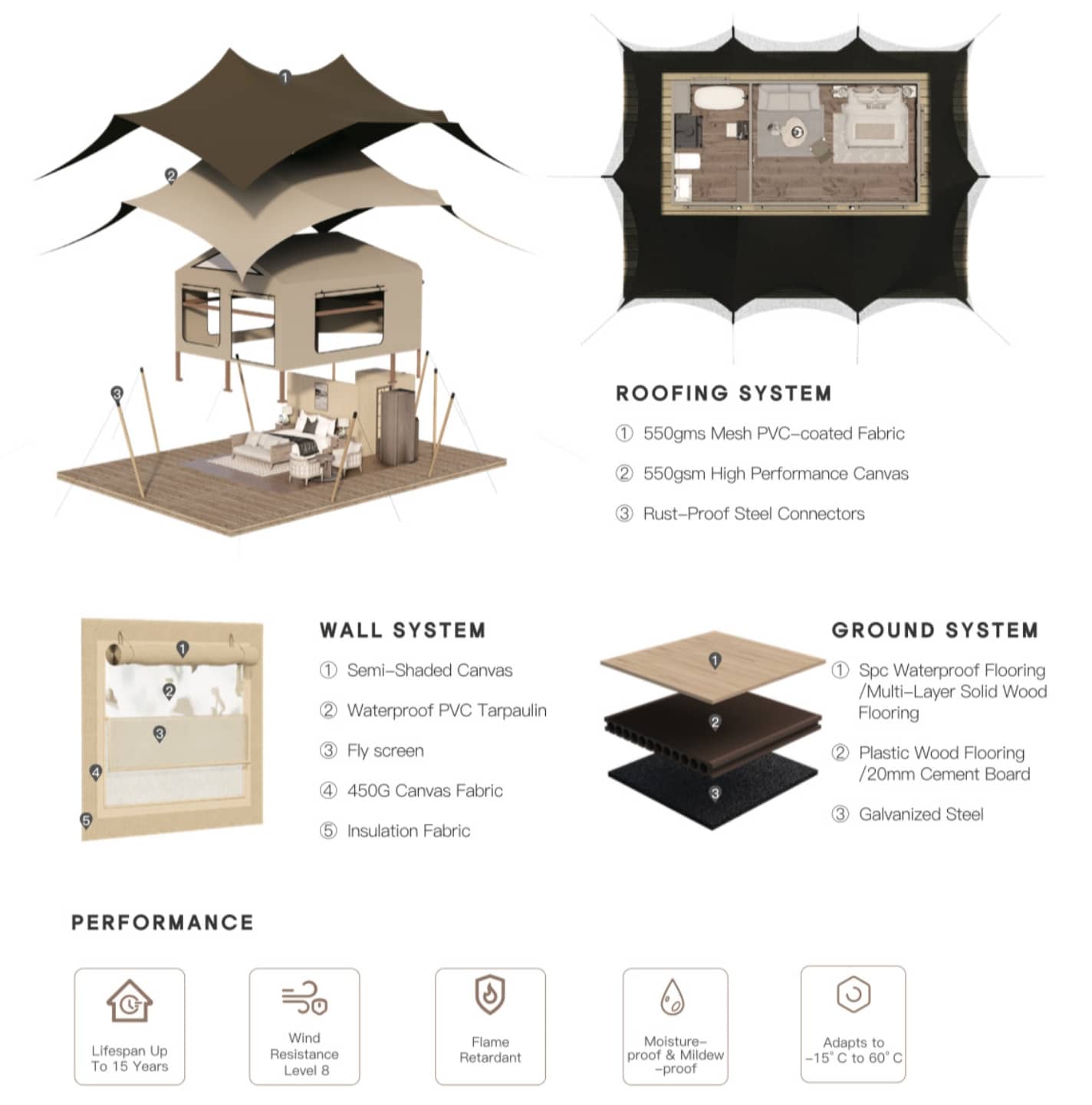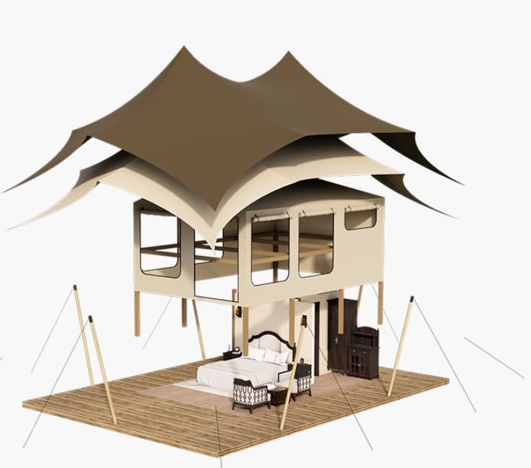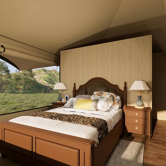 For those looking to make a bold architectural statement, our Stretch Tents offer a departure from conventional designs. Their fluid, curved profiles and multi-wave spire details create visually stunning spaces that feel both expansive and intimate. Ideal for resorts, event spaces, or glamping precincts seeking a contemporary edge, the R-series and T-series can be tailored to a variety of landscapes and functional needs.